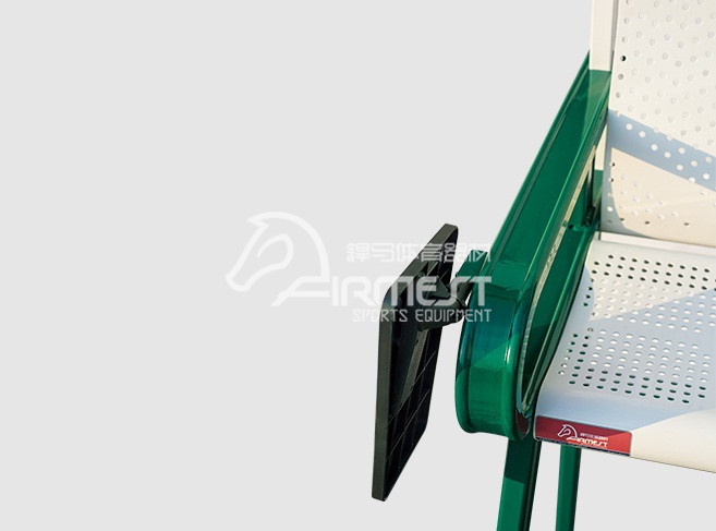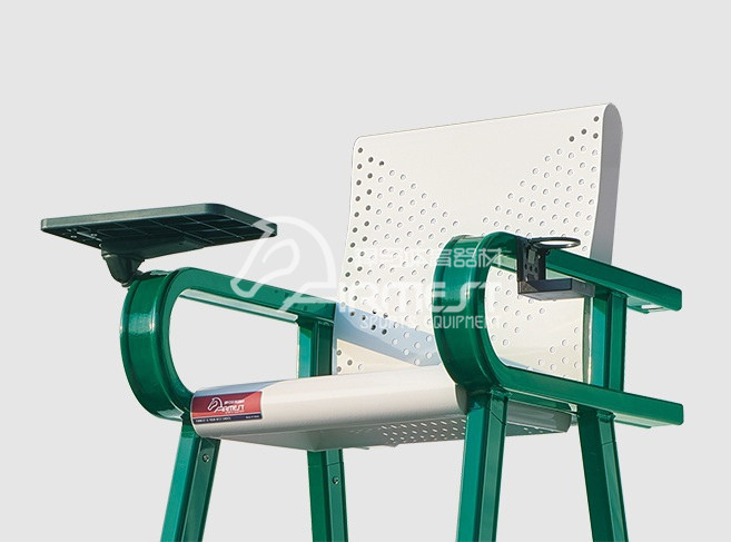 设计:座靠板采用冲孔板设计。支架全新八字型,配合U型扶手,令裁判椅具有舒适、稳固、美观等特点。高弹橡胶椅脚管套设计,防止损坏地面。