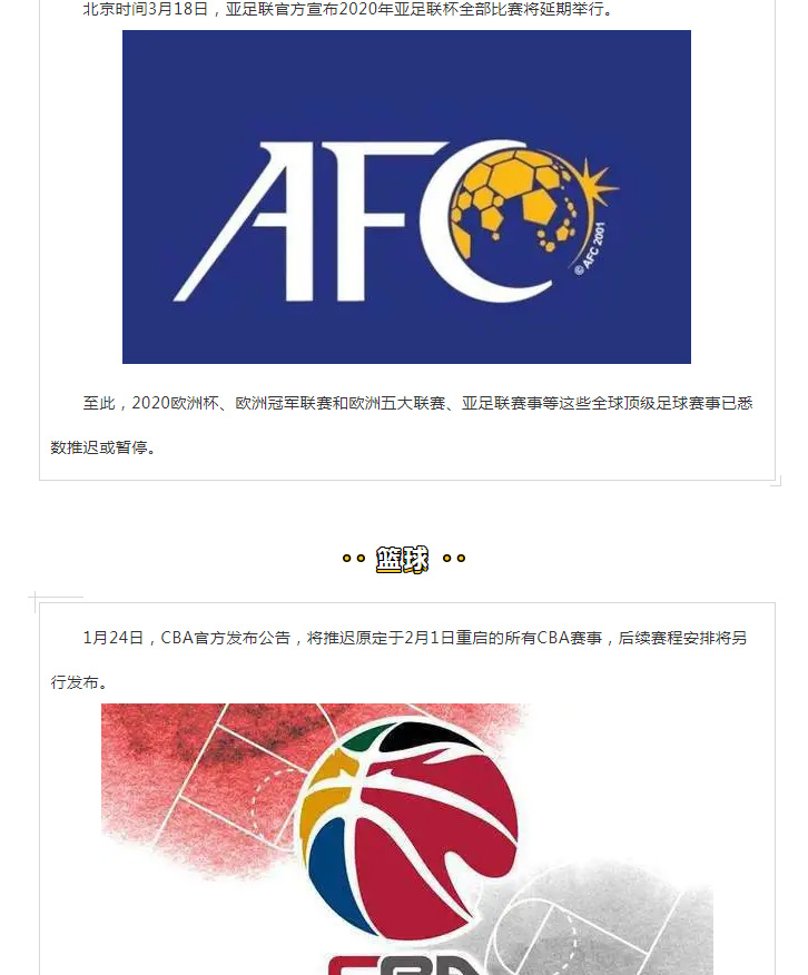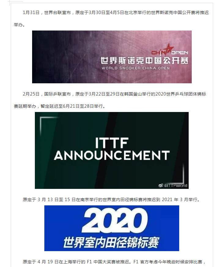 多项重磅体育赛事或将推迟,甚至面临取消!